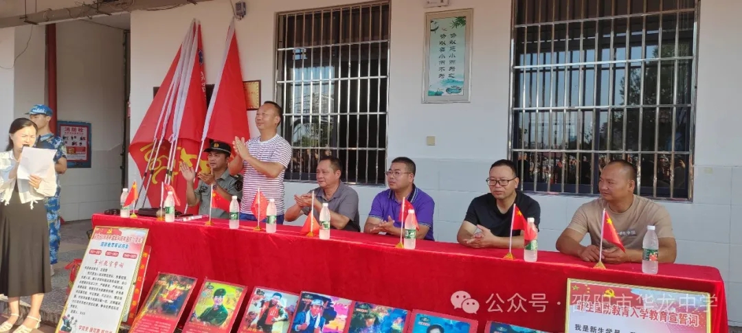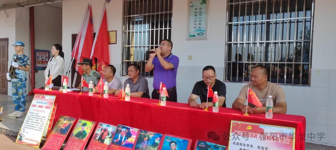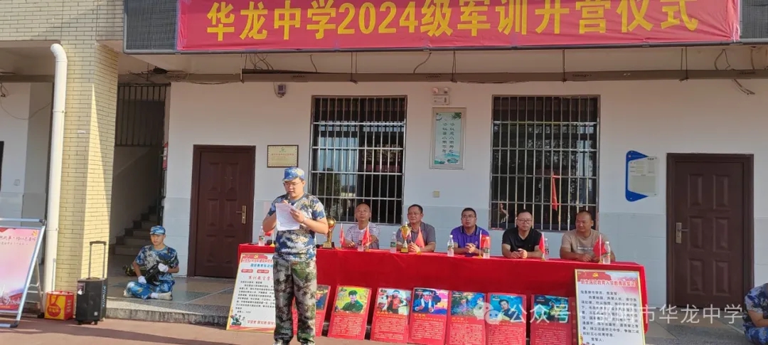 學校彭書記宣布華龍中學2024級高一新生軍訓正式開始。